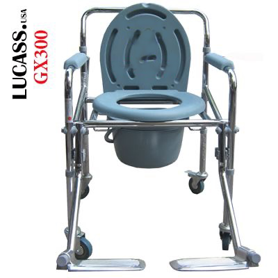 Ghế bô vệ sinh cao cấp có bánh xe và để chân Lucass GX300 dùng để đi vệ sinh trong phòng cho người già, người ốm, người khuyết tật