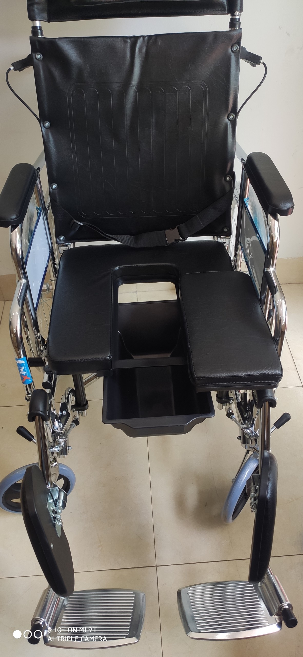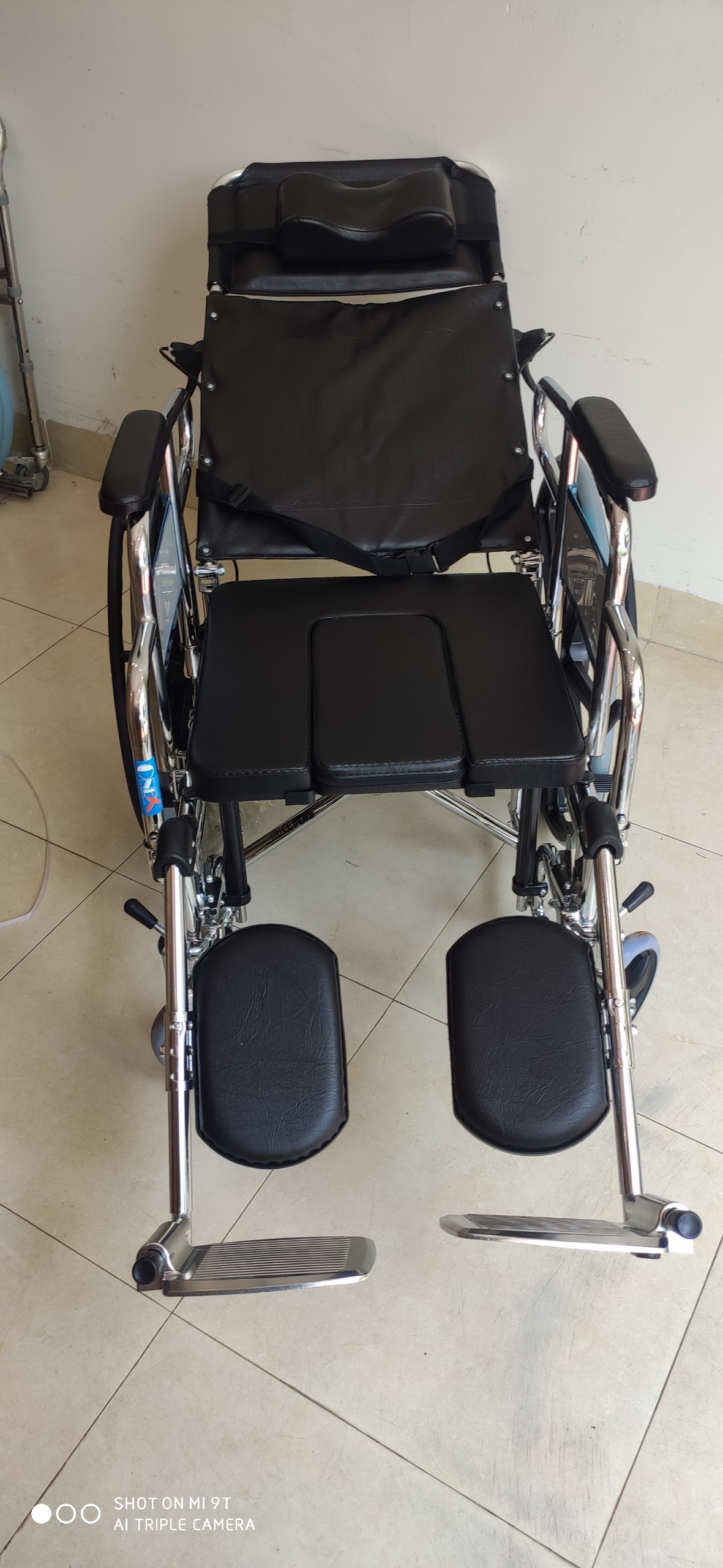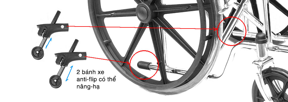 – Khung thép mạ chrome. Bánh mâm. Có thắng tay. Cơ cấu ngả lưng lưỡi gà tách rời tay nắm.