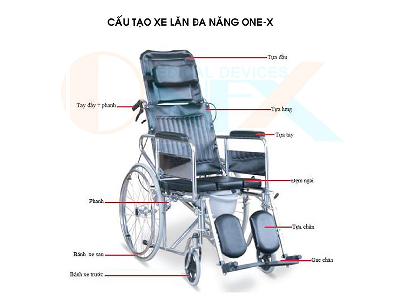 Xe lăn ONE-X 607GCJB là xe lăn Đa năng cao cấp, chống lật anti- flip (6 bánh) khi lưng xe ngả nằm 120-180 độ.