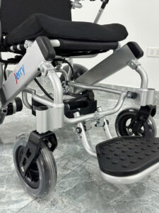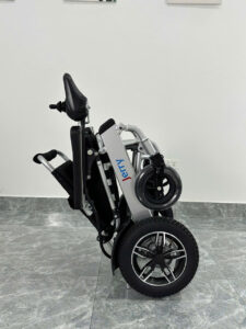 -Khung xe hợp kim nhôm cao cấp không rỉ sét, tổng trọng lượng của xe 25 Kg .Rất nhẹ so với đai đa số mẫu xe lăn điện khác với trọng lượng trung bình 40 – 50 kg.