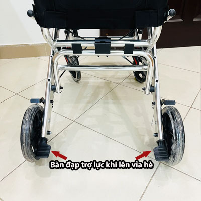 Phía sau có bàn trợ lực, ấn chân vào đó để bánh trước nâng lên giúp cho việc lên vỉa hè, bậc thềm được dễ dàng.